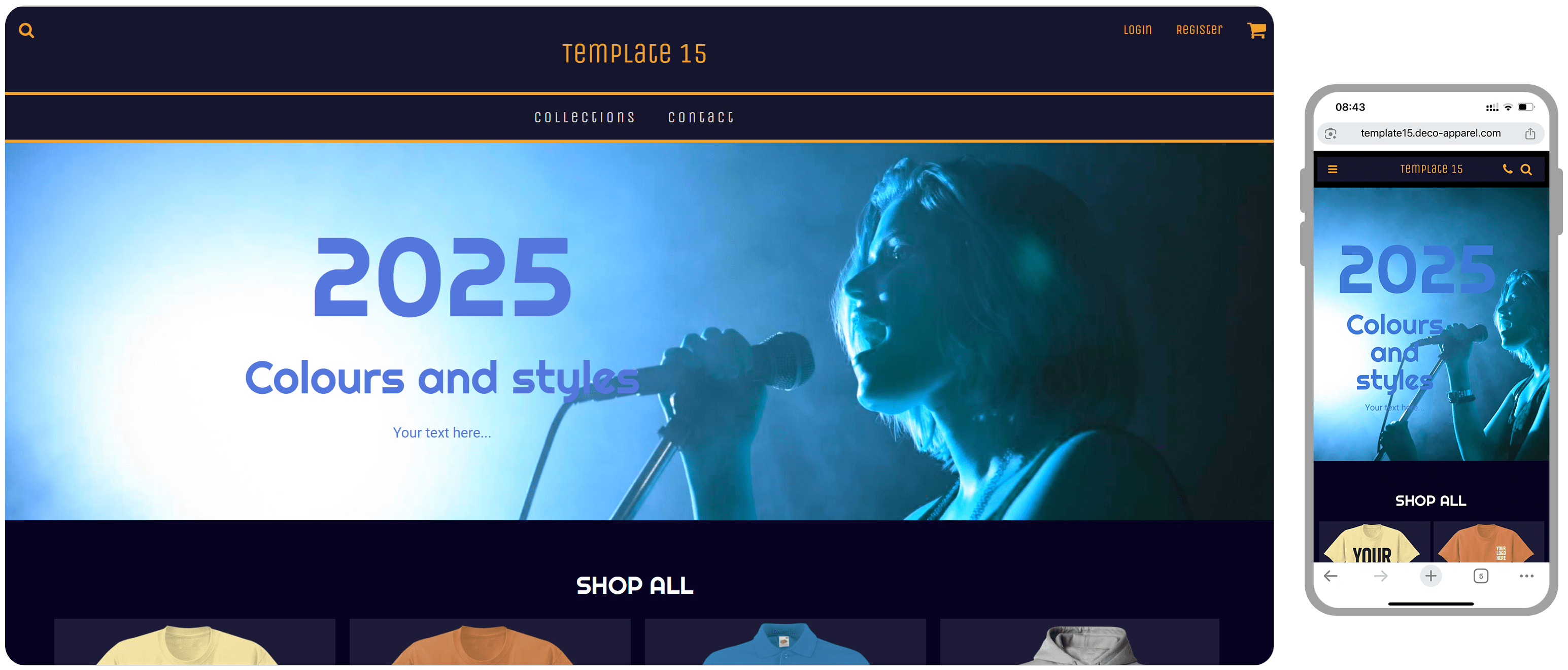 This is a store template.. Once you make your selection, we will update it with elements related to your own brand (logo, contact information, the products you want to sell, and the images you would like to feature,...)